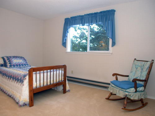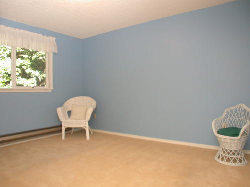 This second photo of the upstairs third bedroom shows the open space and sitting areas.
