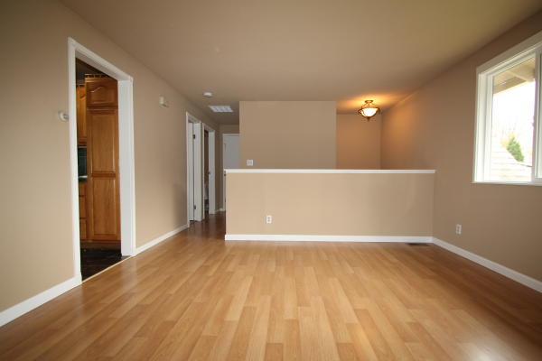 This second view of the lower level family room shows the window and back door that leads to the fenced back yard.