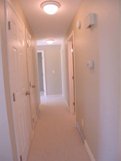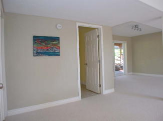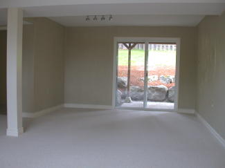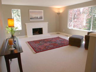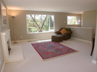 View of the sunny large living room and the new wall-to-wall carpeting featured throughout the house.