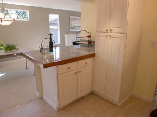 The large kitchen includes: Built in under cabinet lighting, granite tile counter tops, microwave, rang/oven, dishwasher, garbage disposal and vinyl sheet flooring.