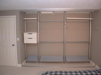 This view shows the large master closet with the doors removed to display the custom closet organizer.