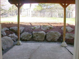The lower level rectreation room opens to the private back yard patio through the sliding glass door .