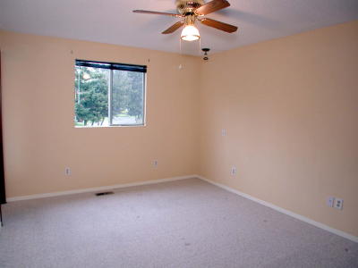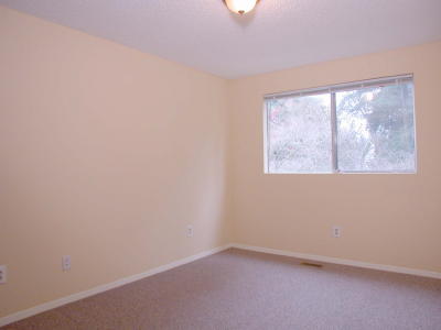 These photos show the wide open space of the second bed room with double door closets and large window.
