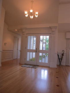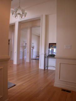 You will make a grand entrance through the front beveled glass double door entry that is framed with turn-of-the century type molding finishes that are featured throughout the home, chandelier and vaulted ceiling.