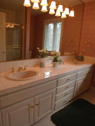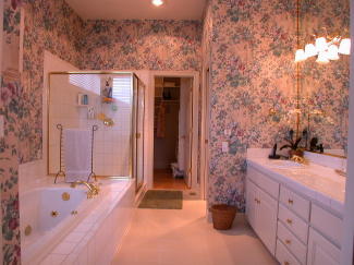 Five piece Master Bath features a deep jetted tub, large shower, double vanity, huge mirror and cabinets and private water closet.