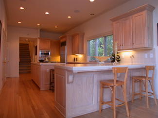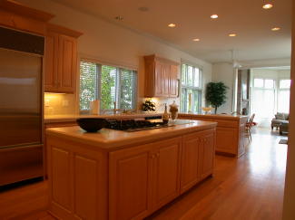 The gourmet kitchen features top of the line cabinets (featured throughout the home), under cabinet lighting, Dynasty six burner gas range, Sub-Zero refrigerator, microwave, Thermador wall oven, dishwasher, trash compactor, appliance closet, lots of counter space and eating counter.