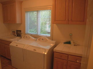 The laundry room has ceramic tile floor, large sink, folding table, lots of cabintes and counter space, and leads to the three car garage that is wired for cable and telephone, features generator hook-up and storage closet.