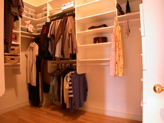 The Master walk-in Closet is well lit and has an abundance of built-in closet organizers that are featured throughout home.