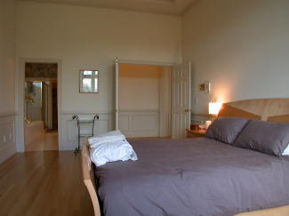 Enjoy the impressive secluded master suite with floor to ceiling windows and window treatment.