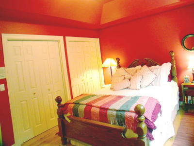 This view of the master bedroom shows the double entry doors in the spacious master.