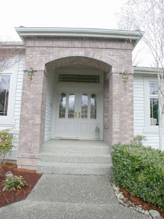 Welcome your guests through the beveled glass double doors under this covered entry.