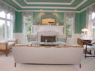 Entertain your special guest in the sun filled formal living room with 11' high tray ceilings, marble hearth, wood mantel, decorative mill work, wood trim and wainscoting.
