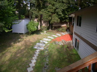 View of the Storage Shed and partial view of the back yard.