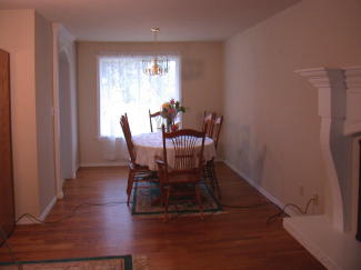 The large sunny Dining room with Hardwood Floors.