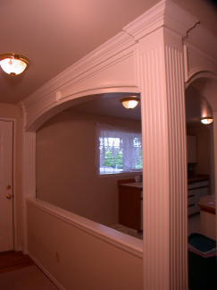 The wide entrance features beautiful fluted wood trim work you will find through out the home.