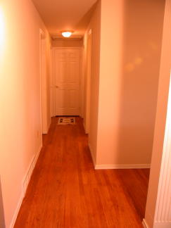 Upstairs Hall way with Hardwood Floors leads to the Linen Closet.