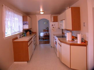The sunny Kitchen has lots of Cabinets and Counter tops; Breakfast area; New Microwave; New Oven/Stove and new Dishwasher.