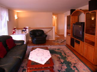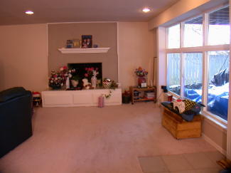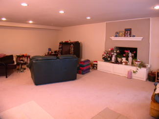 The very large lower level family room with second Fire Place, New Carpet and floor to ceiling Double Pane "Low E" Window and double "Low E" Window sliding glass doors that open to the private back yard.
