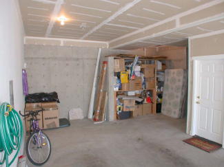 The extra large lower level two car garage with high ceilings and lots of storage space.