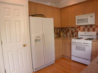 The huge upgraded kitchen features lots of beautiful maple cabinets and storage space, maintenance free Quartz Silestone slab counter tops, tiled backsplash and large / deep stainless steel double sink. Appliances include: gas range/oven, microwave, refrigerator, and dishwasher.