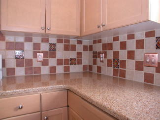 Other views of the kitchen showing the pantry, custom tile backsplash and the maintenance free Quartz Silestone slab counter tops.