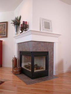 This unit features a gas fireplace with slate hearth and wood mantle.