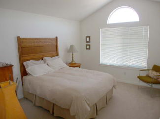 The large sunny master suite has vaulted ceilings, huge window and sitting area.
