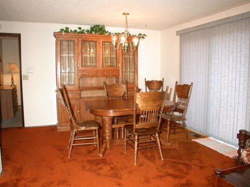 View of the large open dinning room with double sliding doors that lead to the back yard deck.