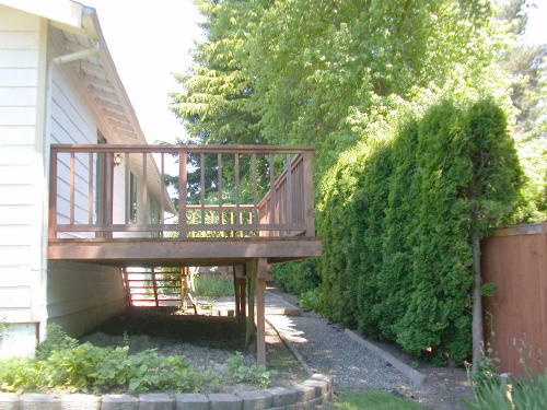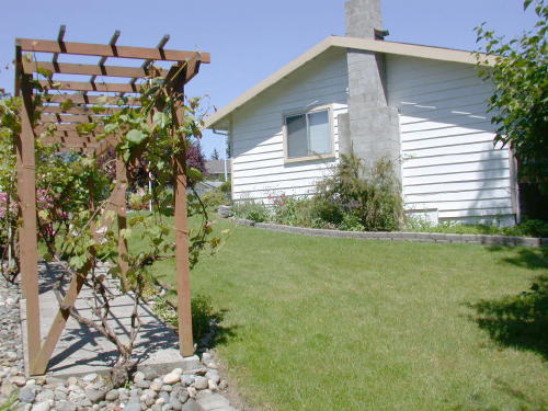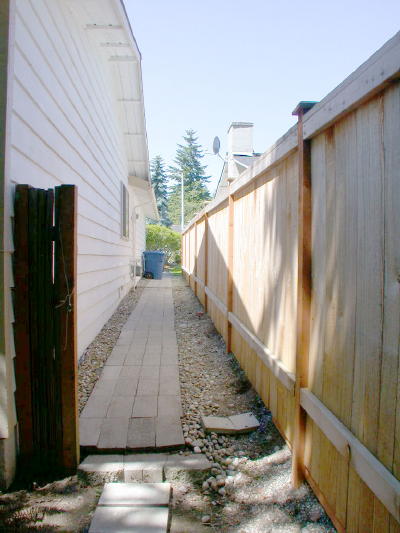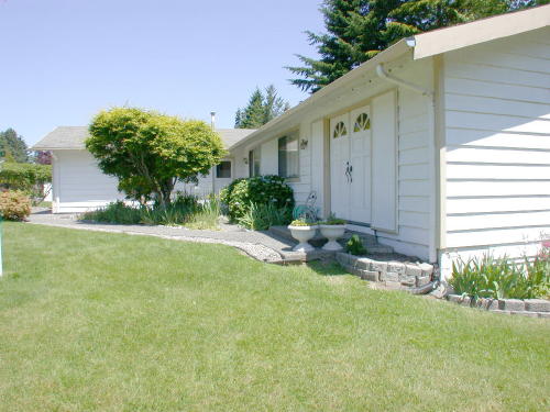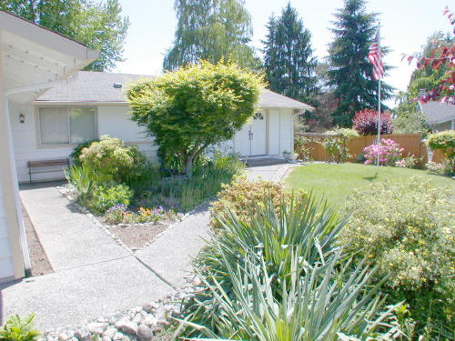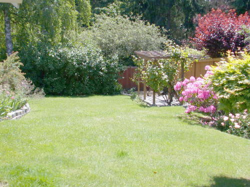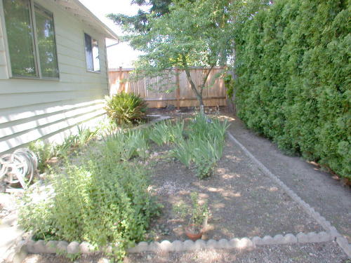 This view of the side yard is looking at the beautiful flowers in bloom.