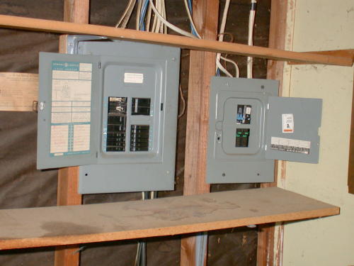This photo shows the newer gas furnace and hot water heater located in the large two car garage.