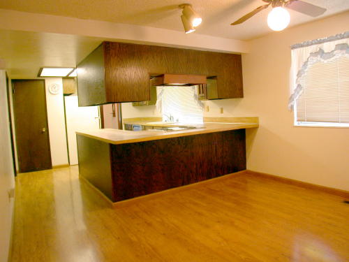 The kitchen has lots of work counter space and storage cabinets, deep double sink, Pergo floor and large window. Appliances include: Stove top and oven, new dishwasher, refrigerator and garbage disposal.