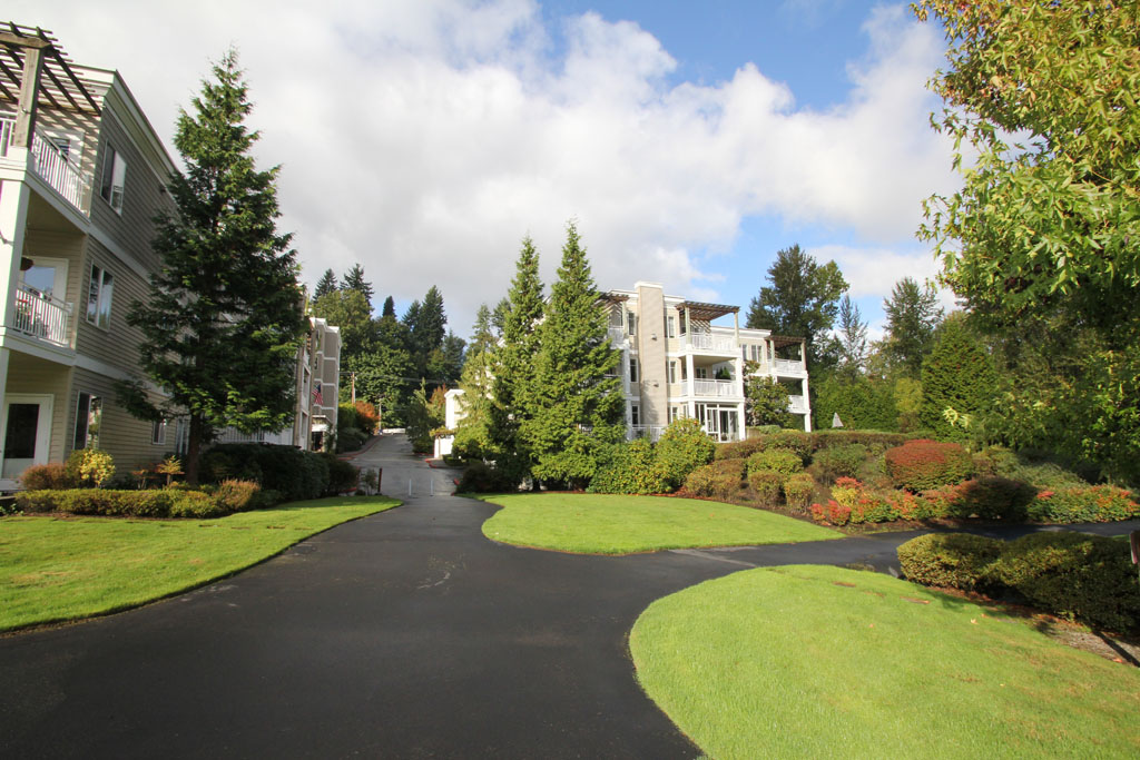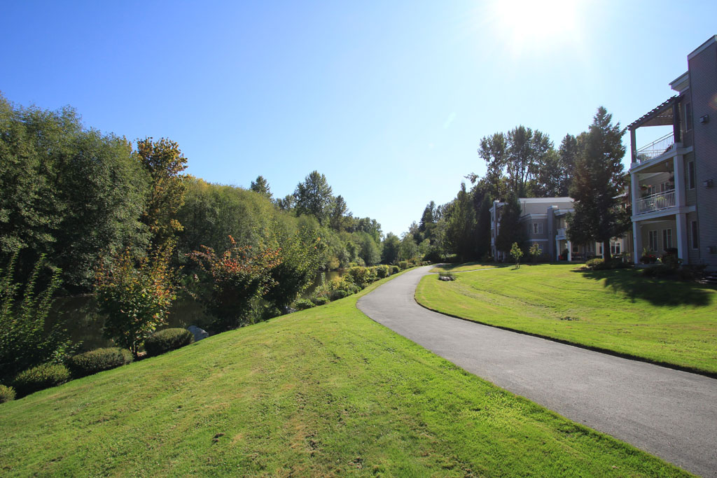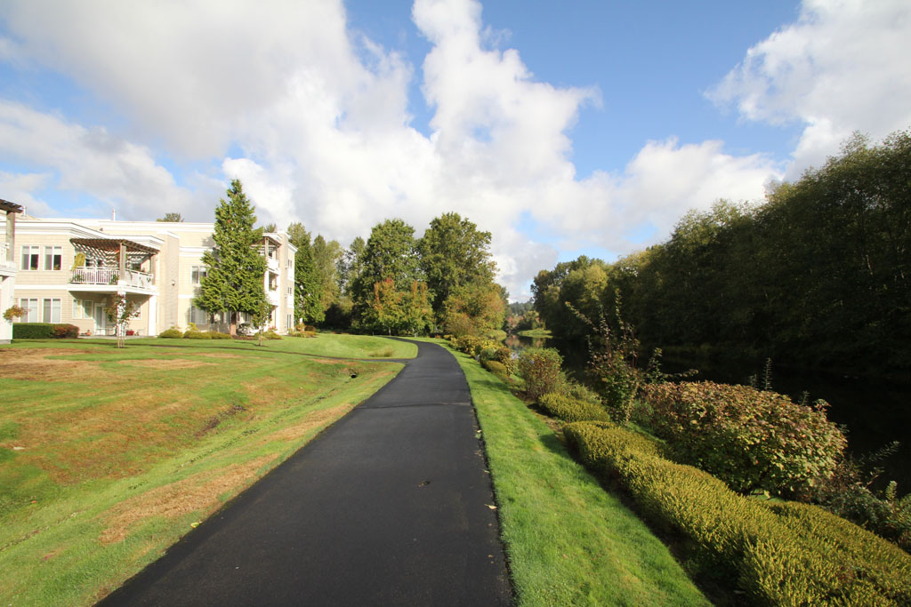 View of building "C" on the right and the easy access blacktop community walkway that leads to Bothell Park and Bothell Landing.
