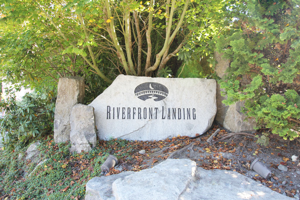 Sunny view of the private small boat/kayak launch at Riverfront Landing.