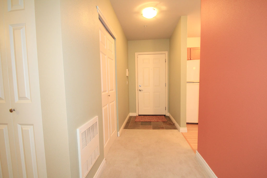 This top floor condo unit is sunny and bright, has a covered entry area and easy storage closet located to the right.