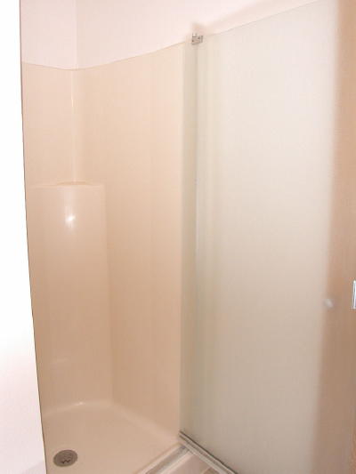 These photos show the extra shower located across from the large linen closet in the large hall bathroom.