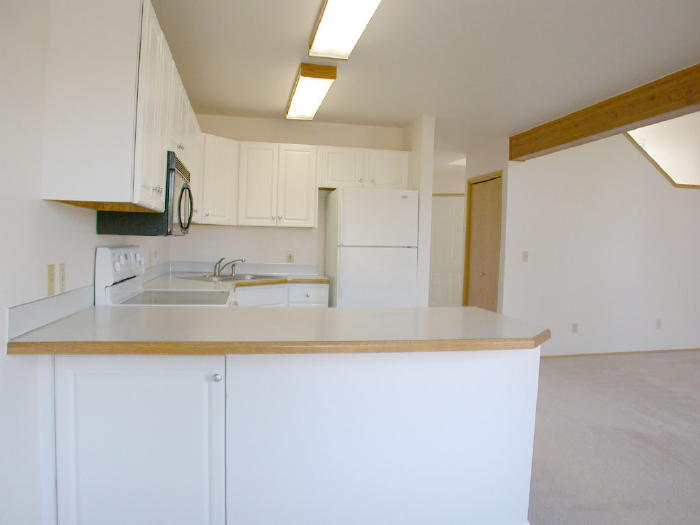 Unit "A" has white cabinets. Unit "B" has Oak cabinets.