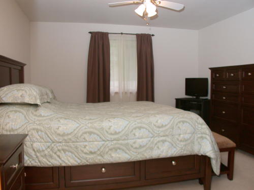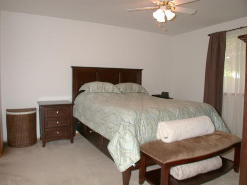The master bedroom with large window has room for a king size bed and large comfortable furniture.