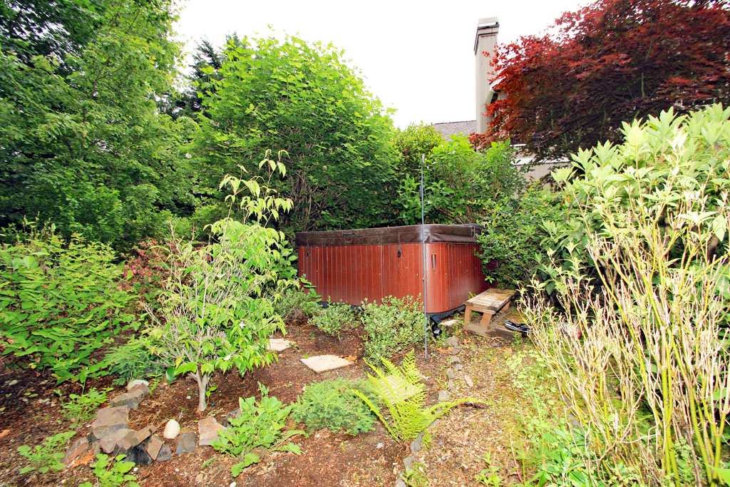 One of those hidden private garden spaces has a large hot tub.