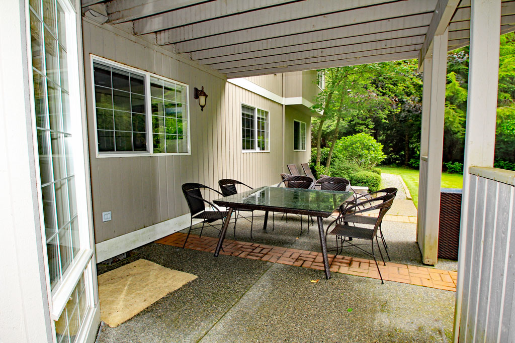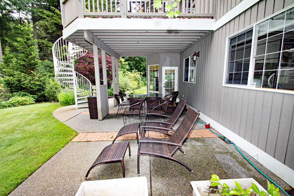 View of the tranquil patio area that extends under the upper deck.