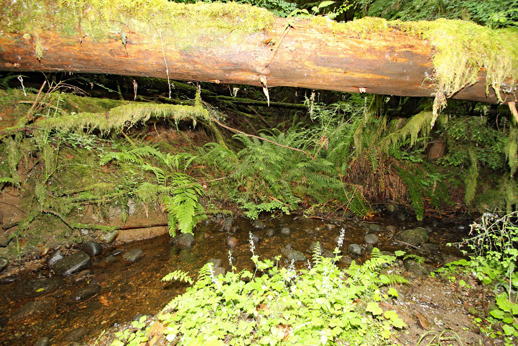 Further down the wooded path is a private setting view area that overlooks the running brook in the backyard.