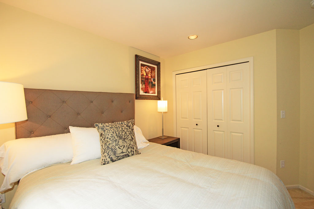 The second bedroom has two wide opening bi-folding closet doors and wall-to-wall carpeting.