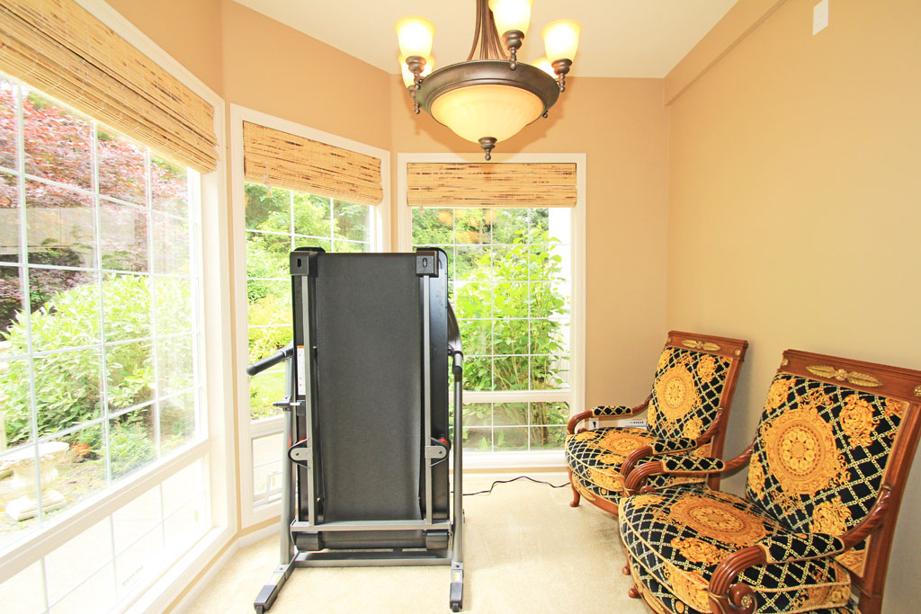 You will enjoy the open nature view of the backyard from this sunny reading room with large bay windows.